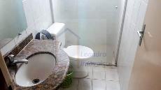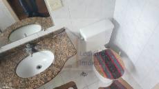 Banho Social revestido em cerâmica, box em Blindex, espelho;